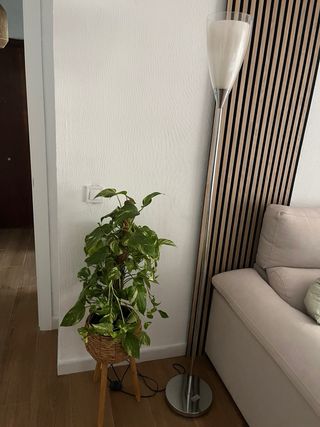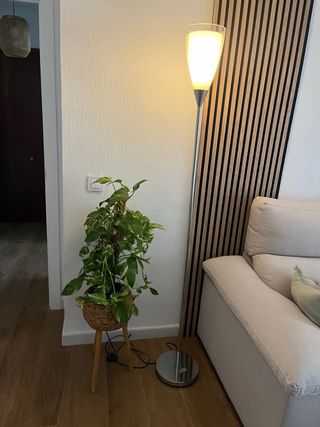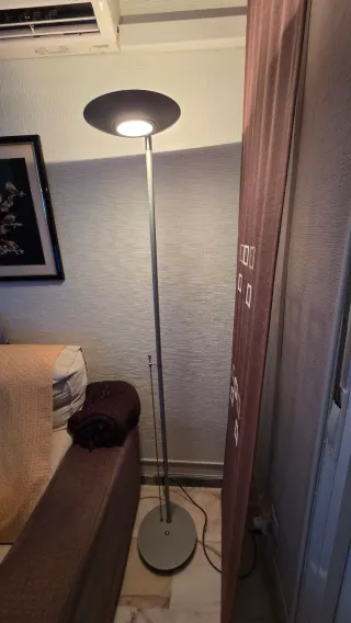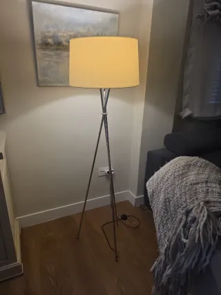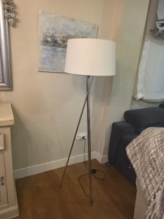 Elegante lámpara de pie con acabado en níquel mate y luz cálida. - 3 módulos LED de bajo consumo. - Luz blanca cálida de 3000 K. - Potencia de 18 W. - Ahorro energético de hasta el 87%. Nueva a estrenar en su caja. Tengo dos unidades. Si te llevas las dos 70€