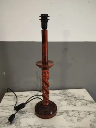 Pie de lámpara de mesa con un diseño clásico y elegante. Su base y cuerpo tallado le dan un toque distintivo. - Cuerpo principal de madera con acabado en espiral. - Base redonda y sólida. - Parte superior con portalámparas negro.