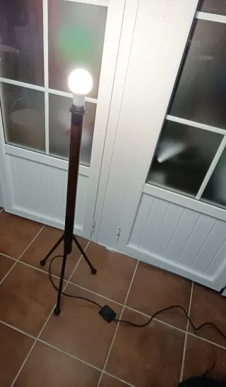 Elegante lámpara de pie con una estructura de madera Altura 1,50 La entrego sin pantalla - Diseño moderno y minimalista. - Base cuadrada de madera. - Varillas verticales de madera Buen precio. Solo recoger