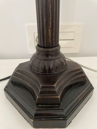 Base de lámpara de madera con un diseño clásico y elegante. Su estructura está certificada y presenta un acabado detallado. - Pieza de madera maciza. - Diseño tallado con estrías. - Base con patas de garra. -No funciona el interruptor -52 cm de base , 150cm alto