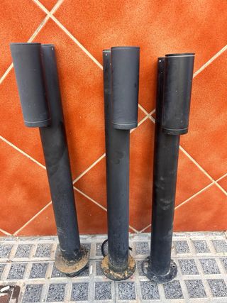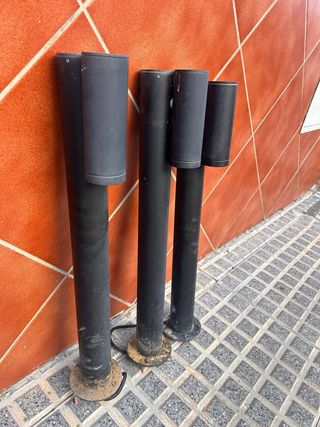 Conjunto de tres lámparas de pie para exterior, ideales para iluminar tu jardín o terraza. Su diseño moderno y elegante aportará un toque distintivo a tu espacio. - Fabricadas en metal - Color negro Hay 12 unidades 6 de ella habria q cambiarle el tranformador