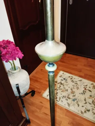 Elegante lámpara de pie con un diseño vintege estilo años 70 - Base circular estable. - Columna vertical. - Pantalla esférica. Esta pieza se ha utilizado para atrezo en cine que es a lo que nos deddicamos y estamos haciendo liimpieza en nuestros almacenes