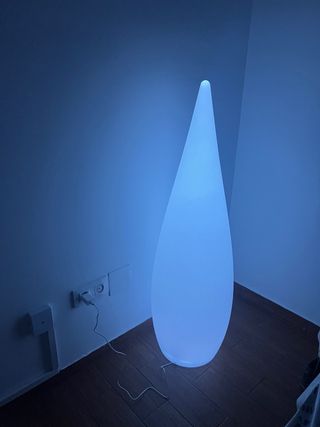 Lámpara de pie con diseño moderno y elegante, ideal para dar un toque de luz ambiental. -Inalámbrica. -Resistente al agua. -Con mando inalámbrico. -Forma de lágrima. - Iluminación LED. - Color azul.