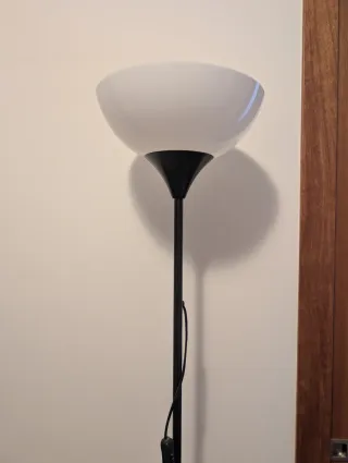Es una lámpara de pie muy bonita. Tiene rota una parte cerca de la bombilla y eso hace que se mueva la parte superior pero se puede arreglar.