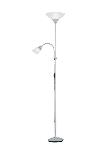 Lámpara de pie plateada con lectura