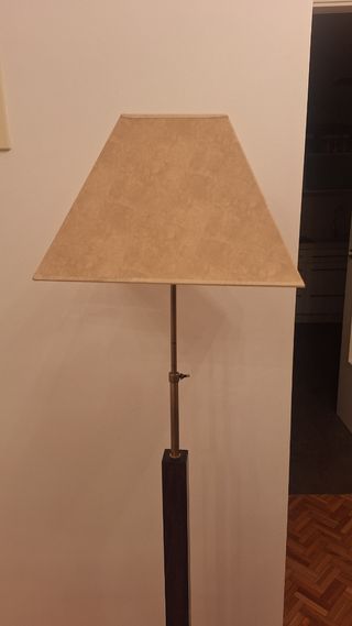 Elegante lámpara de pie con un diseño moderno y minimalista. - Estructura alta y esbelta. - Base cuadrada y estable. - Pantalla cuadrada de color beige (para cambiar porque con el tiempo se ha amarilleado)