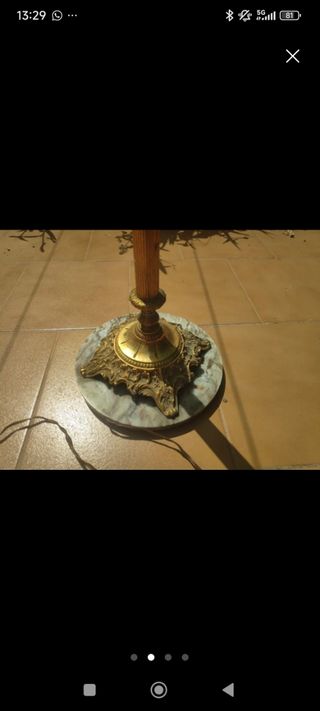 Elegante lámpara de pie con un diseño vintage y acabados dorados. - Base circular de mármol.