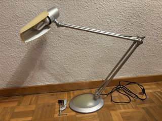 Flexo articulado con doble base, permitiendo su uso tanto en mesa como con pie. - Base para mesa. - Base con pie.