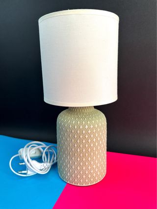 Lámpara de noche de cerámica blanca con detalles dorados, en muy buen estado. Pantalla beige. Da una luz cálida y acogedora, ideal para dormitorio o salón. Lámpara de cerámica blanca con acabados dorados, en buen estado. Pantalla beige. Da una luz cálida y acogedora, ideal para dormitorio, salón o mesita de noche. Altura total: 32 cm Pantalla: 25 cm en la parte más ancha Incluye bombilla funcionando. Lista para usar. Entrega en mano en L'Hospitalet de Llobregat.