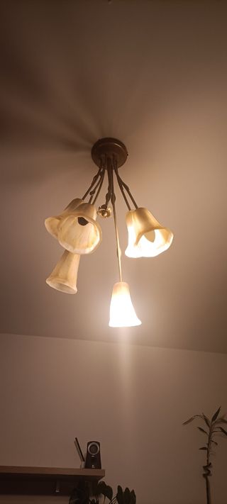 Lámpara de salón o habitación con 5 bombillas.En perfecto estado,se vende por cambio por un ventilador de techo. Viene a juego con otra lámpara de dos bombillas.Se venden juntas o por separado.