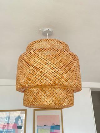 Preciosa lámpara de techo de Ikea, hecha de mimbre y bambú. Tiene un diseño elegante y atemporal. - Perfecta para añadir un toque cálido a cualquier habitación. - Dos pantallas superpuestas crean una iluminación suave y difusa. - Estructura resistente y bien conservada. - diametro 50 cm