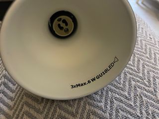 Lámpara de techo SKURUP de IKEA, diseñada por Axelsson/Löwenhielm/Gouriou/Nilsson. Su diámetro es de 19 cm. - Incluye el cableado. - Requiere 1 bombilla GU10 (no incluida). - Potencia máxima: 8.5W.