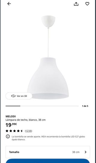 • De media, comprar Lámparas de techo Ikea en Wallapop es un 44% más barato que comprar este tipo de producto nuevo