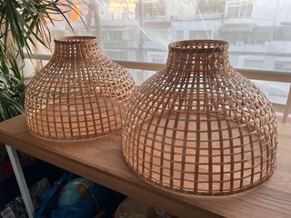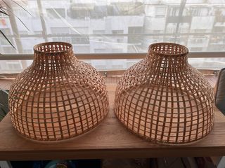 2 (dos) lámparas de techo con un diseño tejido en bambú. - Material natural que aporta calidez. - Estructura abierta que permite el paso de la luz. - No se venden por separado. Sólo acepto pago en efectivo.