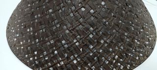 Lámpara de techo con un diseño natural y moderno. - Estructura principal de bambú tejido. - Detalles metálicos en la parte superior.