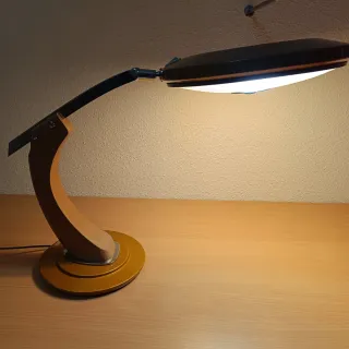 Lámpara de escritorio de diseño icónico de la marca FASE. Su estructura combina metal y plástico para un acabado duradero. - Base robusta y estable. - Brazo articulado para dirigir la luz. - Diseño moderno y funcional.