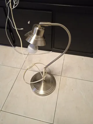 Pareja de lámparas de mesa de Ikea. Son de metal, color plata, les falta tulipa.