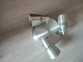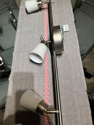 Lámpara de techo Hektar de Ikea con tres focos orientables. Ideal para iluminar diferentes zonas de una estancia. - Diseño moderno y funcional. - Base alargada para montaje en techo. - Focos ajustables individualmente. Incluye bombillas led
