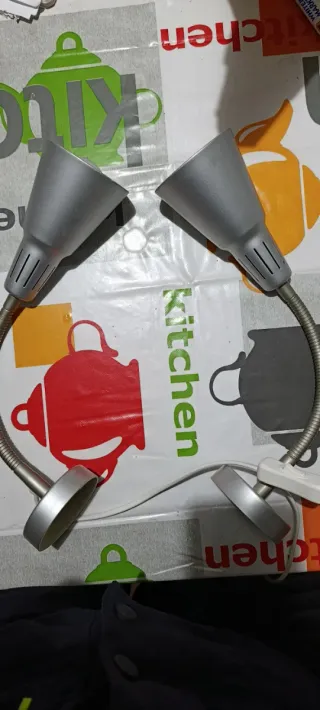 Lampara de Ikea. Funciona bien. 2 Bombillas normales de casquillo cordo. Se rompió el plástico exterior que hacía de pantalla, pero se puede poner otra cosa.