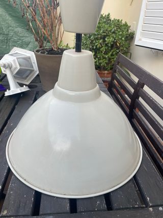 Lámpara colgante de techo con un diseño natural. Da una luz cálida y acogedora, ideal para salones, comedores o dormitorios. En perfecto estado, sin golpes ni roturas. Me he mudado y en el nuevo piso hay apliques de pared. Se entrega desmontada y limpia, lista para instalar. Incluye cable, casquillo y floron original.