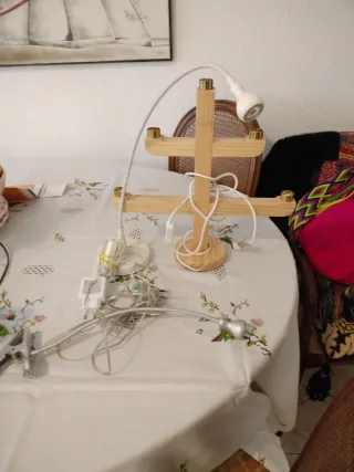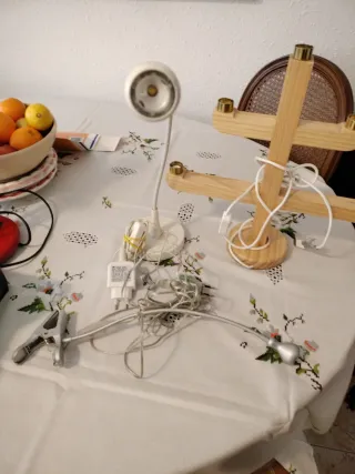 Pack de tres lámparas de la marca Ikea. Una de ellas es de mesa con base de madera , una lámpara de pinza, una de led de lectura - Son de ikea - Diseño moderno y funcional. Las tres por 6