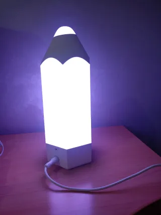 Lámpara decorativa con un diseño original en forma de lápiz. - Iluminación blanca brillante. - Base cuadrada. - Conexión por cable.