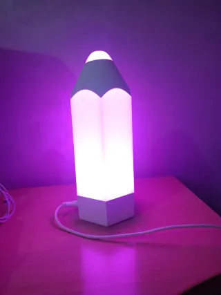 Lámpara de diseño original con forma de lápiz, ideal para mesita de noche o escritorio. Funciona con adaptador de corriente. - Forma de lápiz. - Base cuadrada.