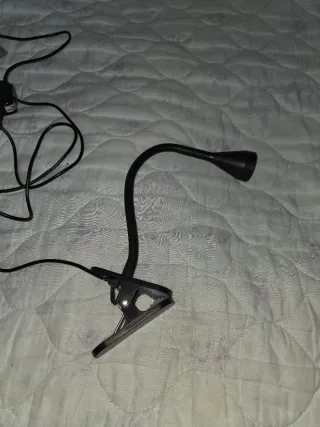 Lámpara de trabajo con pinza de la marca IKEA, modelo Novlinge. Su diseño flexible permite orientarla fácilmente. - Pinza para sujetar a superficies. - Cuello flexible para ajustar la posición.