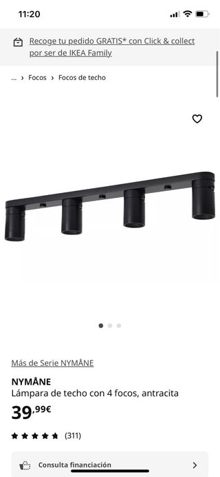 Lámpara de techo de la serie NYMÅNE de IKEA, con un diseño moderno y funcional. pongo la foto de la web porque esta sin abrir - Cuatro focos orientables. - Acabado en color antracita.