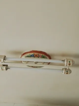 Bonita lámpara de techo con base de cerámica decorada con flores. Ideal para dar un toque especial a tu cocina. - Base de cerámica con diseño floral. - Dos tubos fluorescentes.