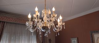 Lámpara araña de cristal techo sin usar