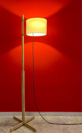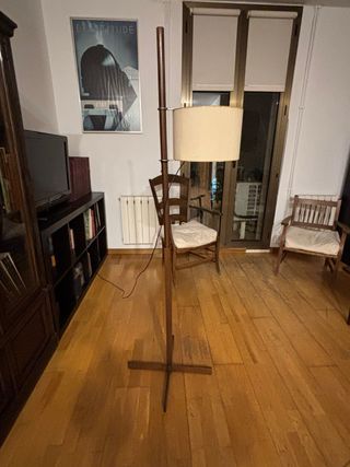 Preciosa lámpara de pie de diseño original de Miguel Milá para TMM. No reedicion de Santa & Cole. Se trata de una de las primeras unidades fabricadas de forma artesanal por la empresa que el propio Milá fundó con su familia. Se encuentra en buen estado, lista para usar. - Estructura de madera oscura y metal. - Pantalla de tela beige, en perfecto estado,no original. sistema de encendido original de cordón. Todas las piezas originales excepto la tela de la lampara. pieza icónica del diseño español del SXX. - Pieza única de coleccionista.