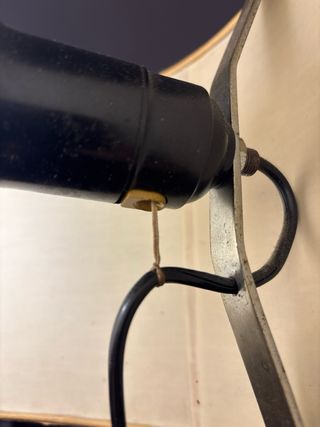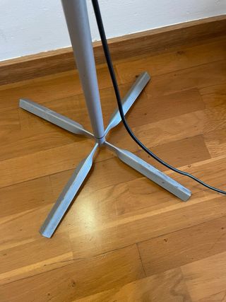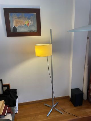 Lámpara de pie. Desconozco si es la TEMA o AL-2 con otro pie o una version previa de la TMD. Precursora de la TMM. Diseñada por Miguel Milá editada por Santa & Cole. Como se ve en las ultimas imagenes la union de la pantalla esta separada, se puede reparar y pegar pero como montada queda detras del palo, no se aprecia nada. Recogida en mano.