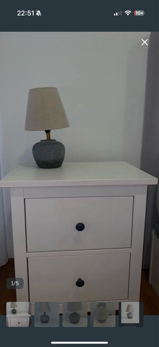 Lámpara de mesa con base de cerámica y pantalla textil - Combina colores blanco roto y beige. - La lámpara es de Zara Home y pantalla de H&M. - Diámetro superior pantalla 16 cm, diámetro inferior pantalla 30 cm. No incluye bombilla.