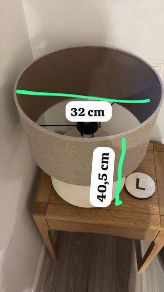 Pantalla de lámpara con un diseño elegante y moderno. - Material de tela resistente. - Tonos beige y marrón que combinan fácilmente. En muy buen estado Mide 35 cm de alto 35 de diámetro la base de arriba 45 de diámetro la base de abajo