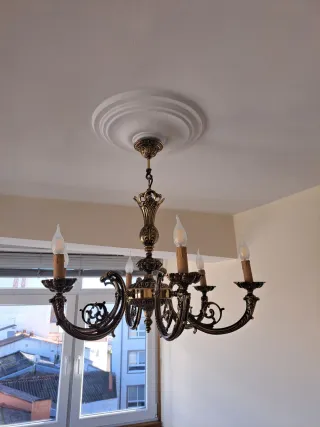 Elegante lámpara de araña con detalles de cristal. - Diseño clásico y lujoso. - Acabado en metal dorado. - Cristales transparentes que refractan la luz.