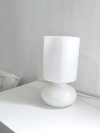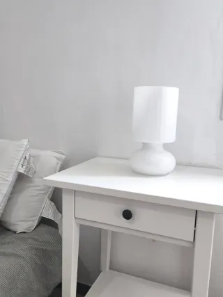 Elegante lámpara de mesita de noche con un diseño moderno y minimalista. Aporta un toque de luz suave a tu espacio. - Incluye bombilla - Color blanco. - Funciona perfectamente