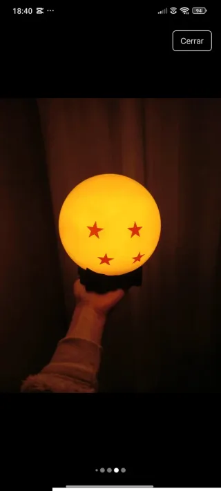Esta lámpara es un homenaje a la icónica esfera de 4 estrellas de Dragon Ball. -Está nueva pero no incluye la caja original. - Diseño esférico. - Decorada con estrellas rojas.