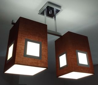 Elegante lámpara de techo con un diseño moderno y sofisticado. Prácticamente nueva. Comprada en el corte inglés. Precio 120 eu - Pantallas cuadradas de tela en tono marrón. - Estructura y detalles metálicos en color plata. - Iluminación cálida y acogedora. -para bombillas todo tipo, boquilla E27.