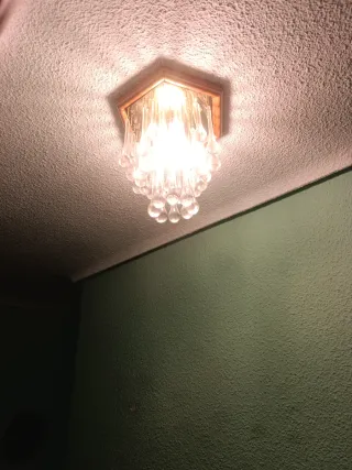 Lámpara de techo cristal y madera