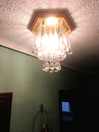 Elegante lámpara de techo con diseño de lágrimas - Base de madera. - Candelabros de cristal. - Precio negociable