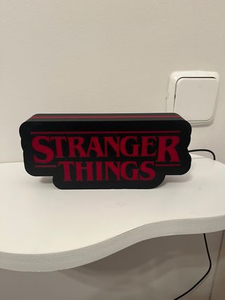Lámpara decorativa con el logo de Stranger Things. - Diseño llamativo en negro y rojo. - Fabricada en plástico resistente. - Conector tipo usb