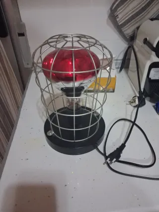 Lámpara de calor versátil, útil para fisioterapia o como brasero. - Estructura de metal protectora. - Bombilla de vidrio.