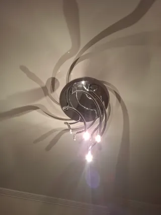 Elegante lámpara de techo con un diseño moderno y acabado cromado. Perfecta para dar un toque sofisticado a cualquier estancia. - Estructura metálica con acabado brillante. - Cuatro puntos de luz direccionales. - Diseño curvo y dinámico. * precio.negociable