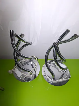 Se venden dos lámparas de mesa con bombillas de luz cálida. Son ideales para crear un ambiente acogedor. Diseño moderno, sencilla y elegante.
