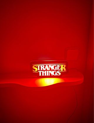 Lámpara decorativa con el logo de Stranger Things. - Diseño personalizado. - Acabado en negro y rojo