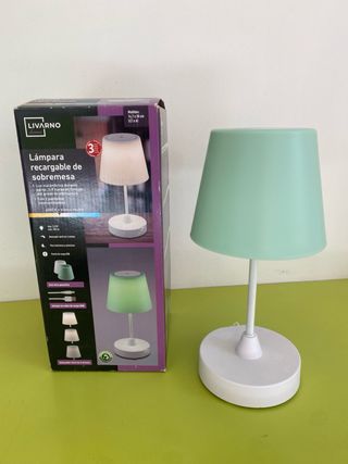 Lámpara de sobremesa recargable de la marca Livarno. Ideal para cualquier rincón de tu hogar. - Luz inalámbrica con autonomía de 3 a 9 horas. - Incluye SÓLO pantalla verde. - Carga mediante USB. - Temperatura de color de 4000 K (blanco neutro). - Tres niveles de intensidad luminosa