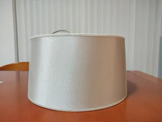 Pantalla de lámpara con un acabado elegante. - Material de tela. - Color gris y beige.