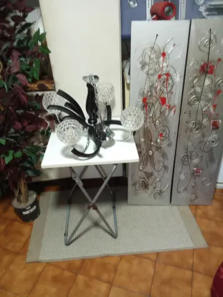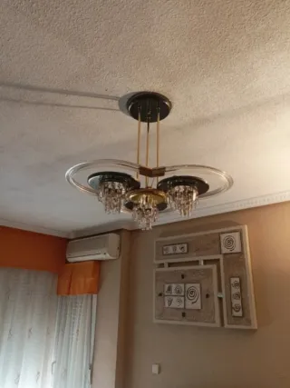SE RECOGE EN ALCORcÓN, CERCA DEL MERCADONA DE LA CALLE LOS CANTOS, NO ENVIO Y NO ME DESPLAZO. PESA, SE NECESITA COCHE. EL PLÁSTICO DE DENTRO, DEL TIEMPO, HA EMPEZADO A ROMPERSE, CON MAÑA, SE PUEDE CAMBIAR POR UNO NUEVO Y TIENES UNAS LÁMPARAS PRECIOSAS Y CARAS A PRECIO DE RISA. TAMBIEN SE PUEDEN USAR COMO ESTÁN, NO SE VEN DESDE FUERA ESOS DETALLES En las fotos se ve lo que digo. La lámpara grande tiene base de cristal Diámetro de la lámpara grande 60cm Alto del plafón de ambas : 20 cm Largo del aplique largo de la de tres lámparas : 70 cm