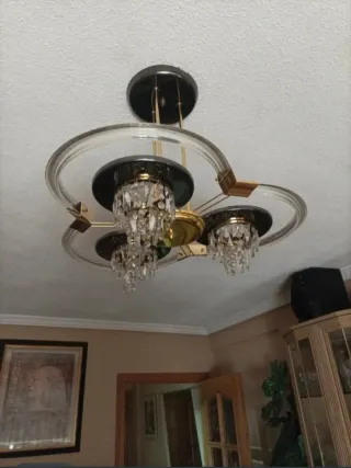 Elegante lámpara de araña de estilo vintage, con un acabado dorado que aporta un toque clásico a cualquier espacio. Su diseño intrincado y los materiales de calidad la convierten en una pieza destacada. - Acabado metálico dorado. - Detalles en madera y cristal. vintage restaurado talla ropa mudanza Salón comedor retro Nike deporte clásico mueble diseño viaje colegio espejo regalo regala chollo cortinas lámpara mochila mesillas mesa Iphone televisor coche bicicleta Pandora zara LeroyHistoria prensa periódicos estudiante periodismo televisión Mudanza radio Revista arte Fotografía flash cámara vídeo cassette cinta Objeto,.